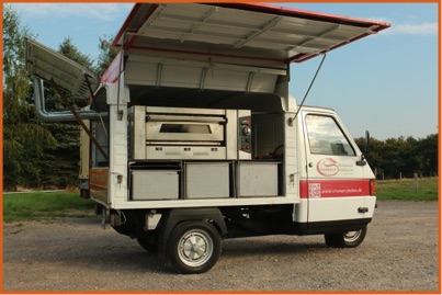 Dann ist unser rollender Pizza-Ofen die erste Wahl. Von den benötigten, stets frisch für Sie zubereiteten Zutaten bis hin zum Geschirr liefern wir Ihnen für bis zu 40 Personen auf Wunsch alles frei Haus.